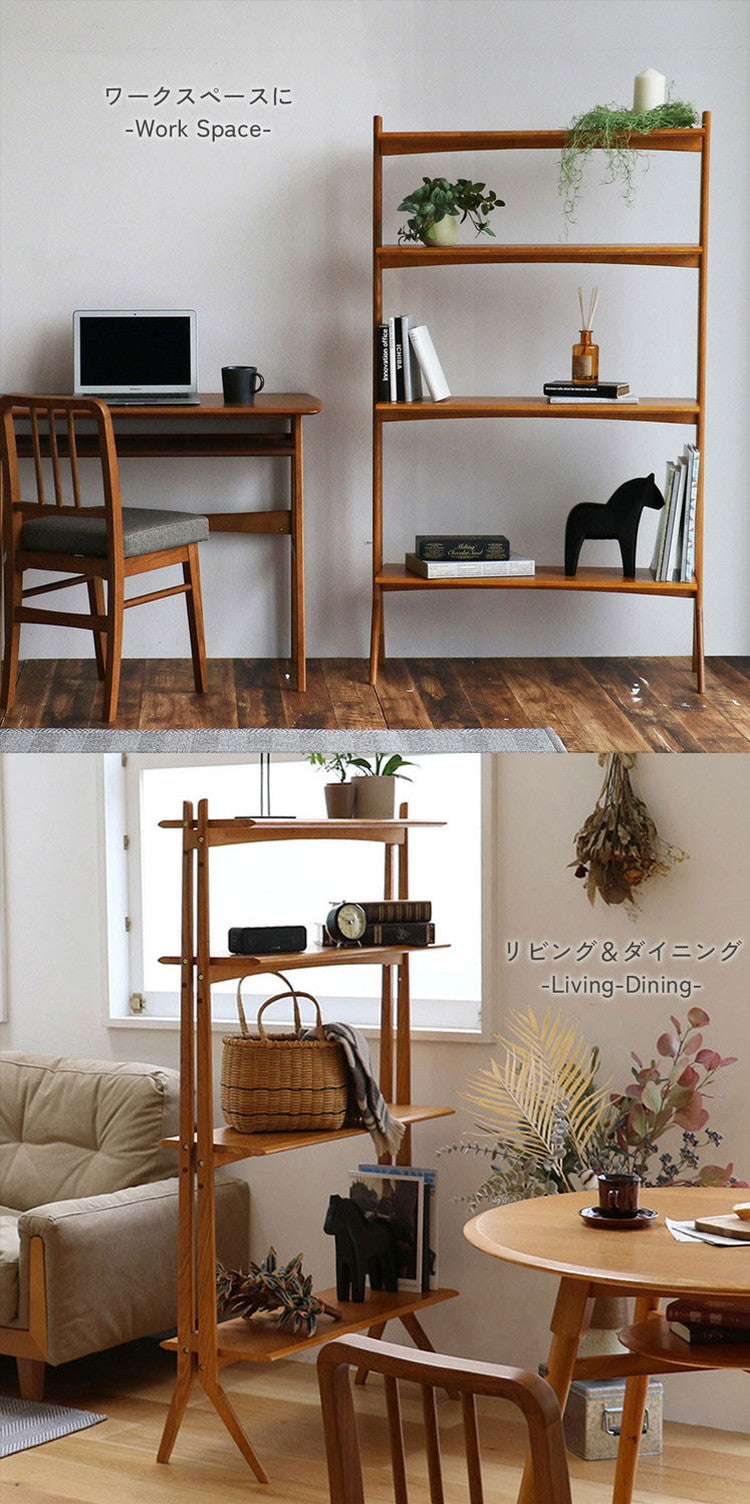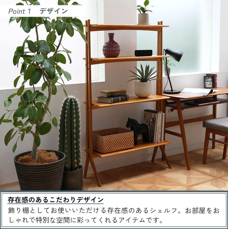 オープンシェルフ 飾り棚 4段 幅84.5 奥行30 高さ145cm 天然木 ディスプレイシェルフ オープンラック コンパクト レトロ おしゃれ 収納家具 間仕切り 棚 収納 リビング R-3741(代引不可)