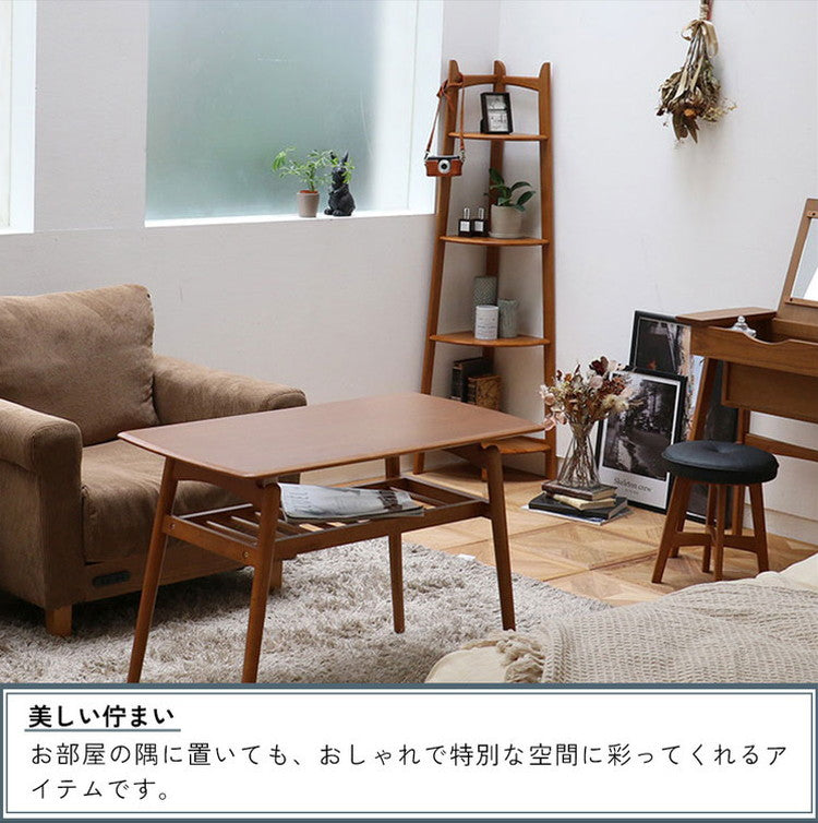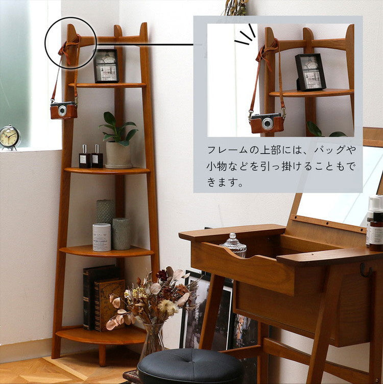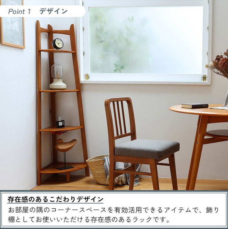 コーナーラック 4段 幅35 奥行35 高さ140cm ディスプレイラック 天然木 コンパクト 省スペース 木製 ヴィンテージ レトロ おしゃれ リビング 棚 ラック R-3742(代引不可)