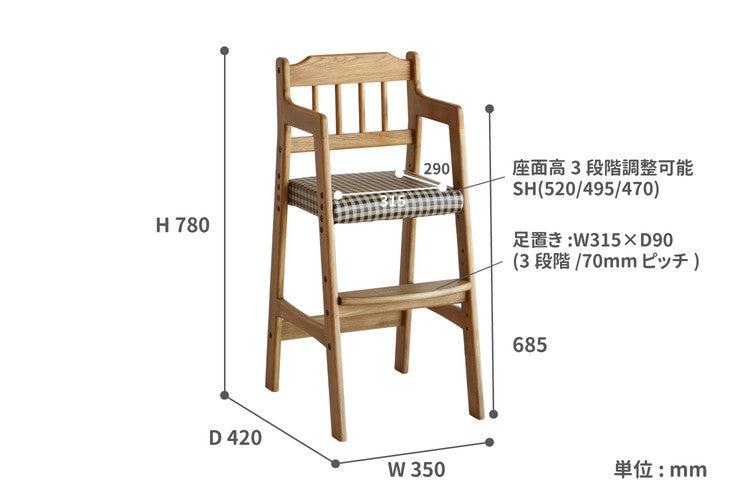 キッズチェア ハイタイプ 天然木 ハイチェア チェック 子ども用 こども キッズ用 椅子 いす イス ベビーチェア 木製 テーブル ダイニング 赤ちゃん お子様(代引不可)