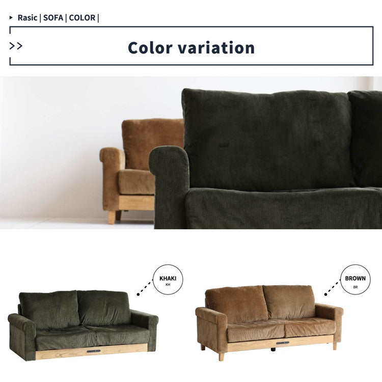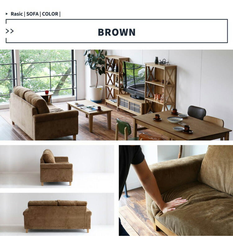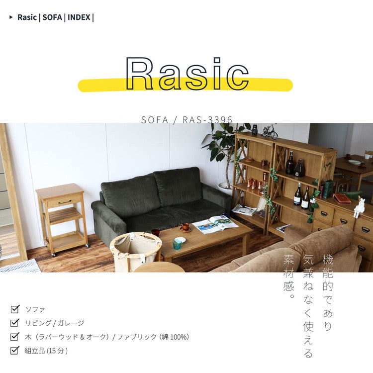 綺麗すぎない、粗さも含めて素材そのものの味わいを活かしたRasicシリーズ。どこか懐かしさを感じるソフトヴィンテージテイストに仕上げました。お部屋に馴染みやすいデザインのsofaです。