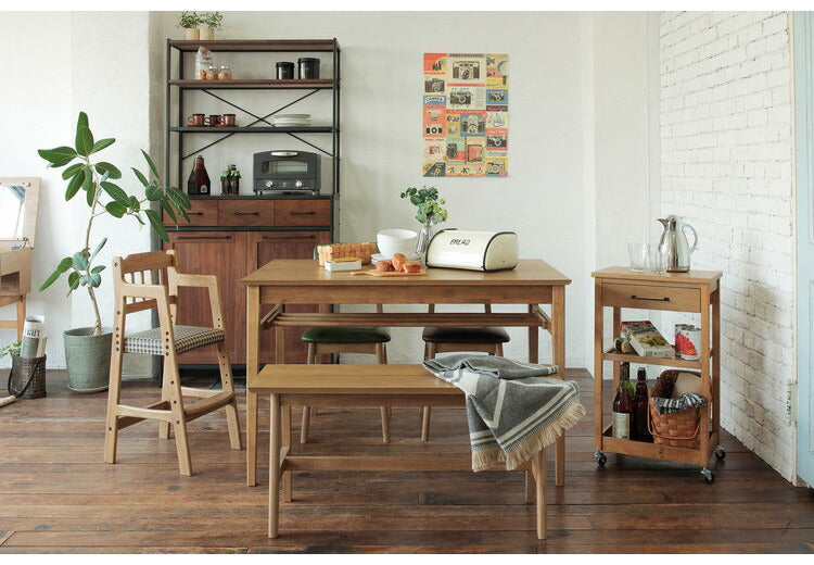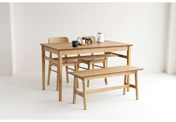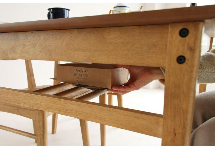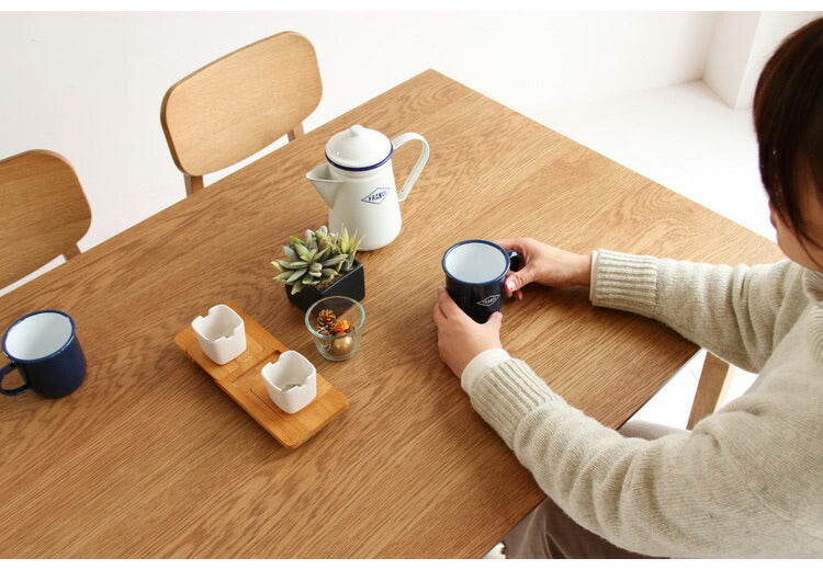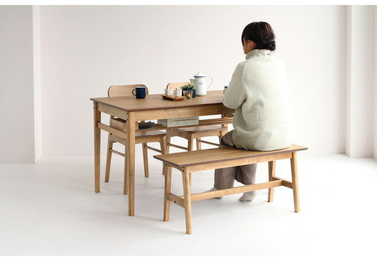 綺麗すぎない、粗さも含めて素材そのものの味わいを活かしたRasicシリーズ。どこか懐かしさを感じるソフトヴィンテージテイストに仕上げています。コンパクトでありながら、しっかりと4人がけができるサイズのダイニングテーブルです。