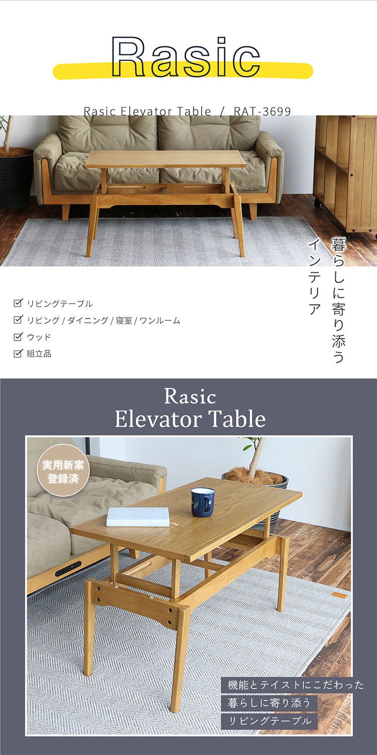 昇降式 エレベーターテーブル 2段階高さ調整 センターテーブル リビングテーブル ハイテーブル ローテーブル 北欧 ヴィンテージ 木製 天然木 おしゃれ コンパクト インテリア 机 デスク テーブル(代引不可)