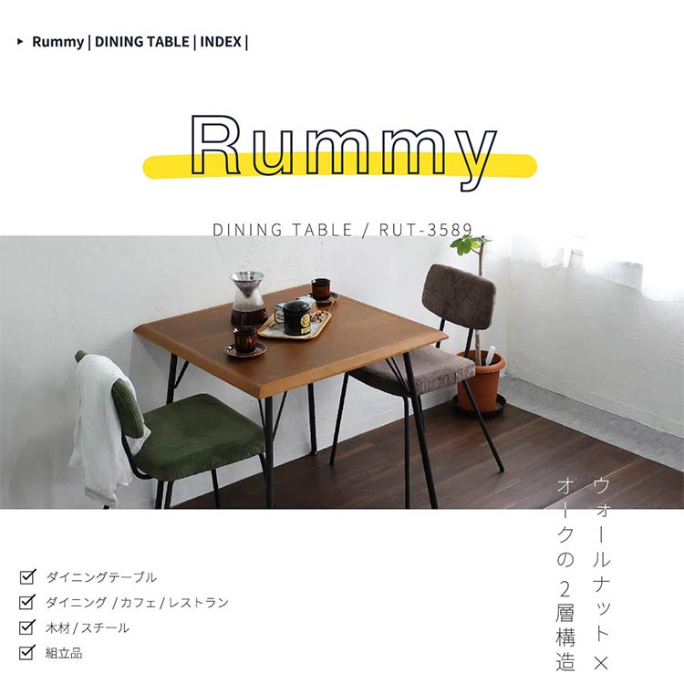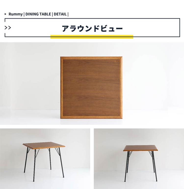 ダイニングテーブル 幅75 正方形 ウォールナット×オーク 切り替え天板 天然木 スチール脚 ヴィンテージ調 インダストリアル おしゃれ(代引不可)