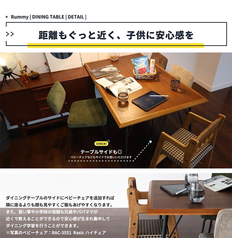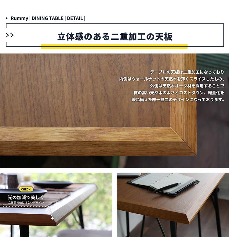ウォールナットとオーク天然木の2層構造が美しいダイニングテーブル。