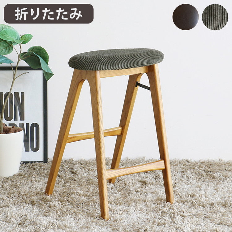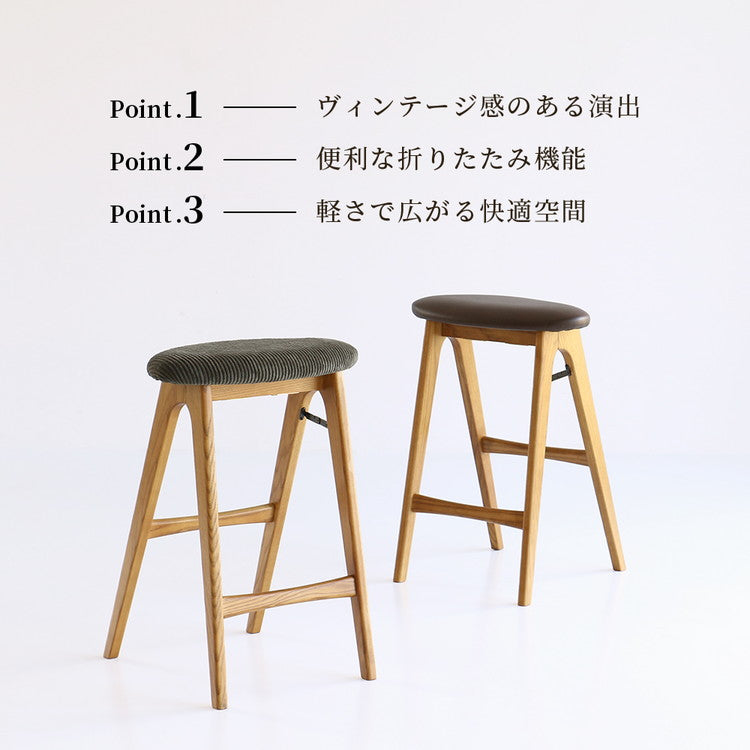 スツール 折りたたみ 幅42 奥行40 高さ60.5cm ハイチェア 木脚 天然木 コンパクト 折り畳み式 カウンターチェア ヴィンテージ風 リビング ダイニング ワンルーム 玄関 椅子 折りたたみ椅子 ST-3748(代引不可)