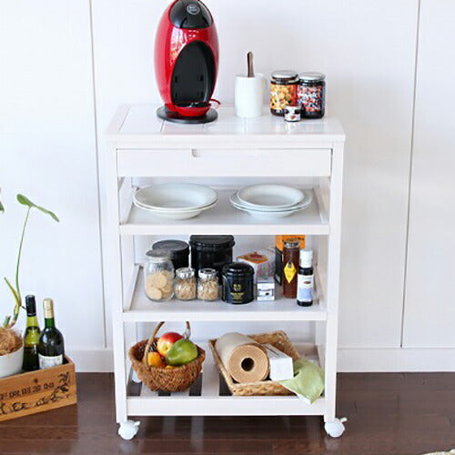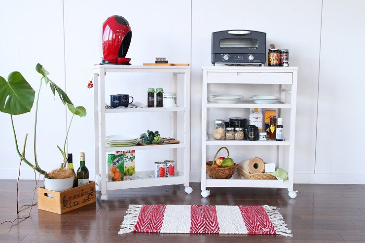 キャスター付きキッチンワゴン 引き出し付き Soup Kitchen Wagon スリム 天板タイル 台所収納 キッチン 食器収納 スリムワゴン(代引不可)