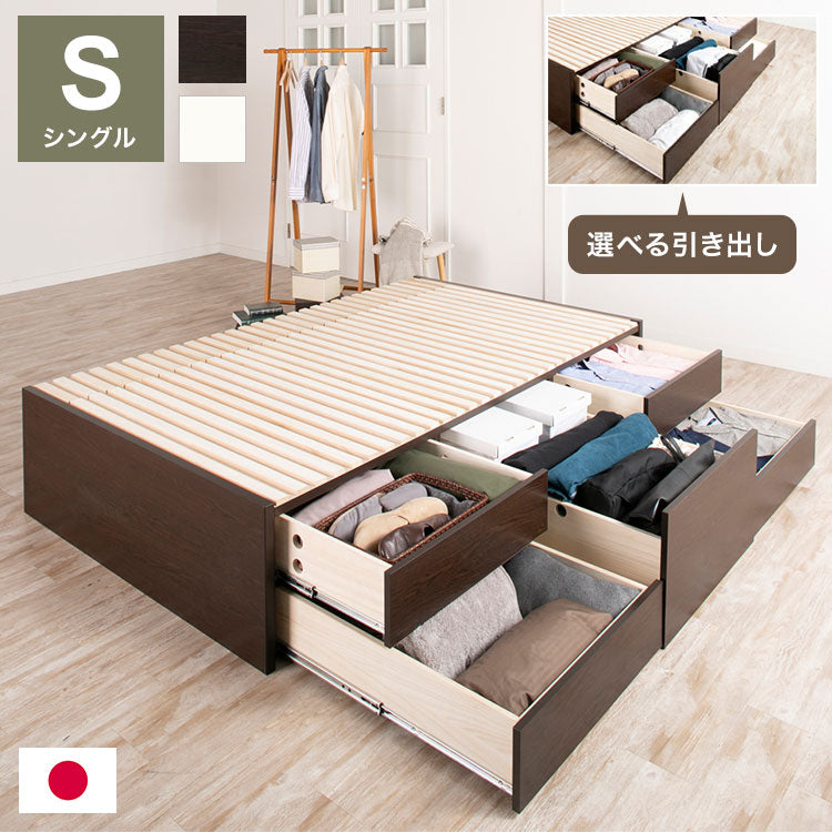 ベッド シングル 収納付き 日本製 フレームのみ 大容量 ベッドフレーム 木製 引き出し付き 収納ベッド 木製ベッド シンプル インテリア 北欧 おしゃれ かわいい 寝室(代引不可)