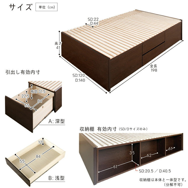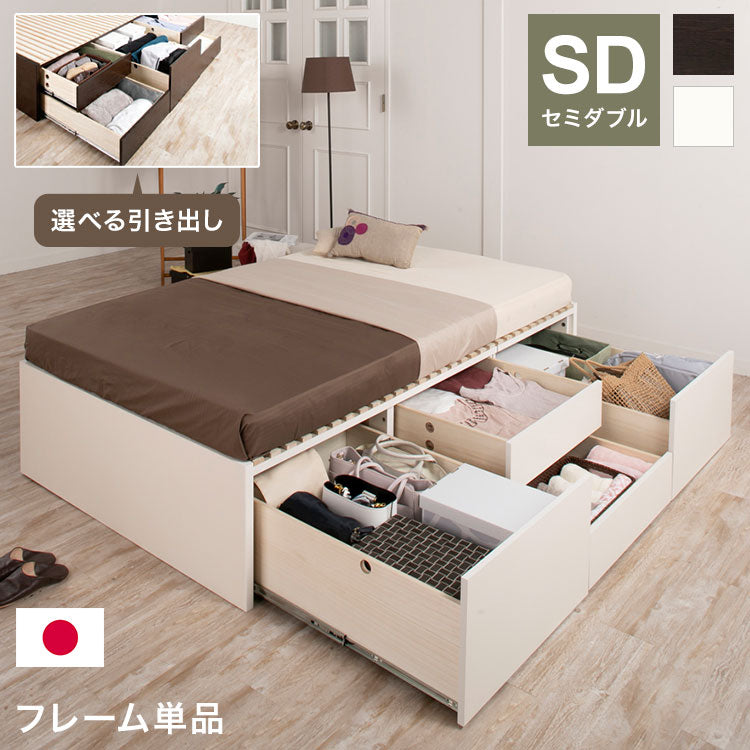 ベッド セミダブル 収納付き 日本製 フレームのみ 大容量 ベッドフレーム 木製 引き出し付き 収納ベッド 木製ベッド シンプル インテリア 北欧 おしゃれ かわいい 寝室(代引不可)