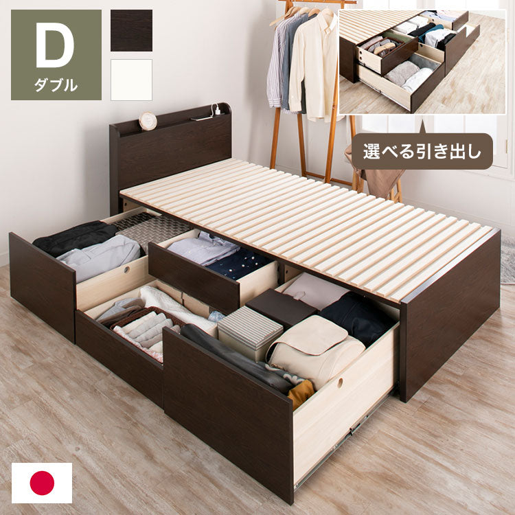ベッド ダブル 収納付き 日本製 フレームのみ 大容量 ベッドフレーム 木製 引き出し付き 収納ベッド 木製ベッド シンプル インテリア 北欧 おしゃれ かわいい 寝室 新生活(代引不可)