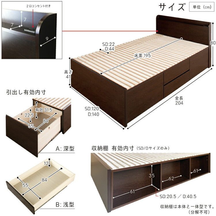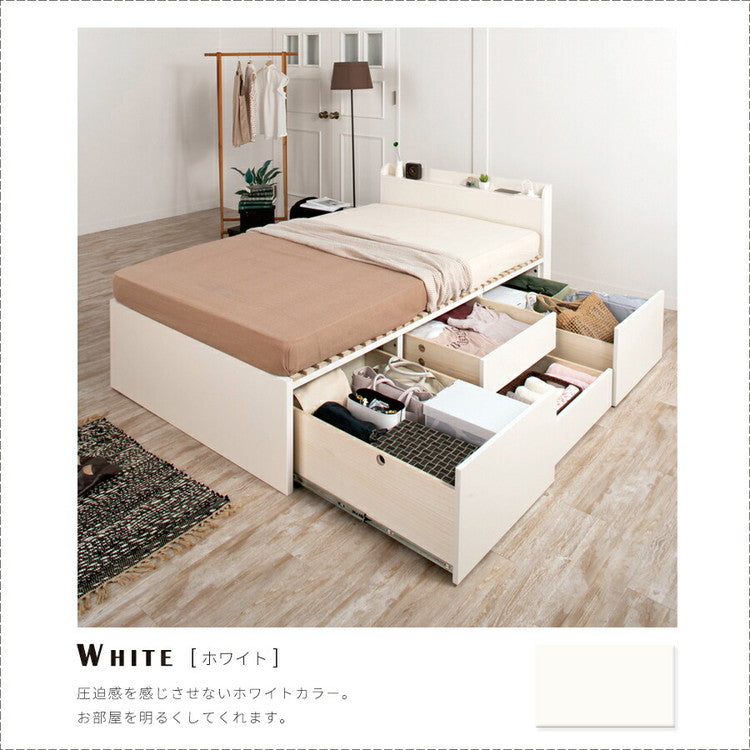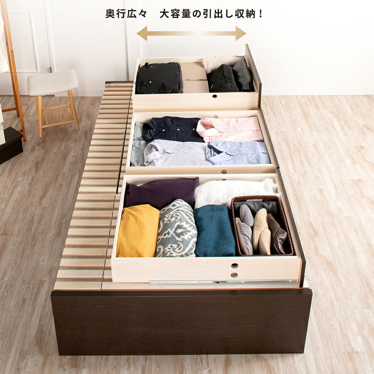 引き出しの奥行き(内寸)84cm で、たっぷり収納できるチェストベッドです。