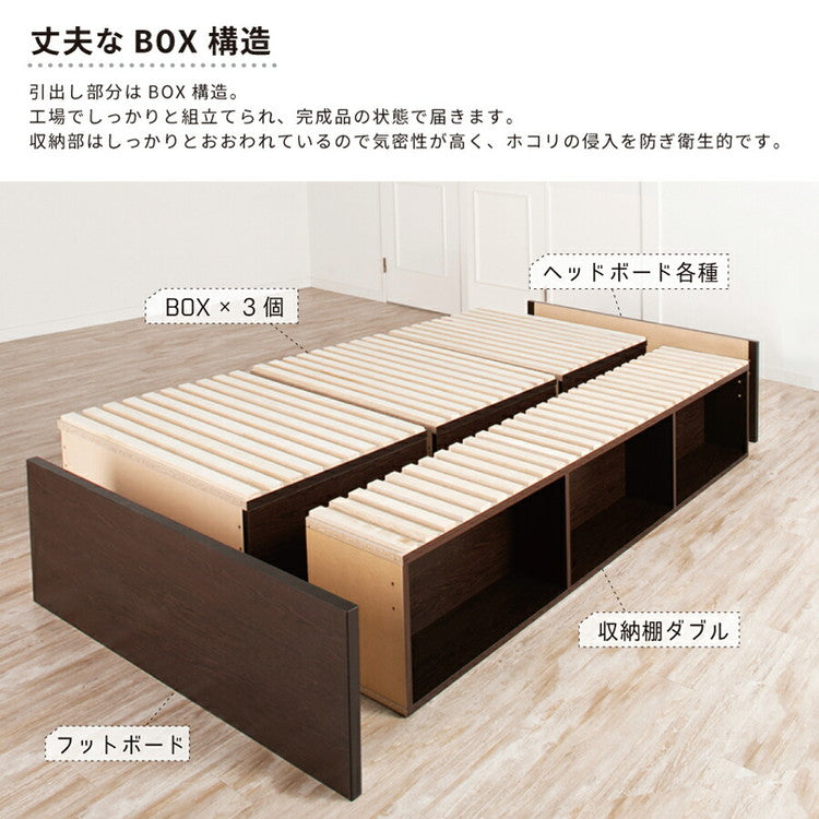 床板は すのこ形状 で「桐材」を使用していますので、通気性も良く清潔にお使いいただけます。 「BOX構造」ですから、ホコリが引き出し内に落ちません。