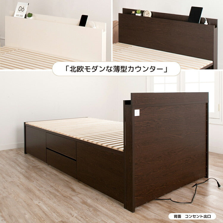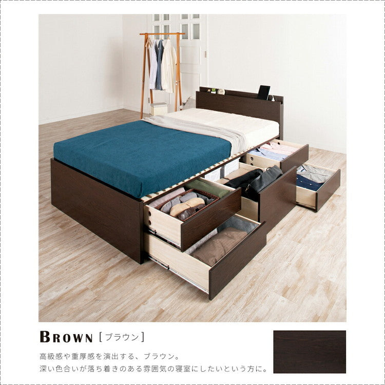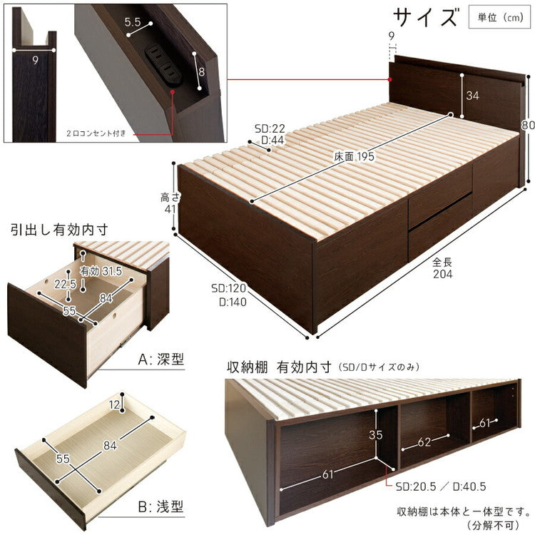 引き出しの奥行き(内寸)84cm で、たっぷり収納できるチェストベッドです。