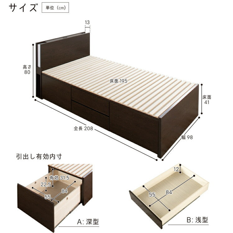 ベッド シングル 収納付き 日本製 フレームのみ 大容量 ベッドフレーム 木製 引き出し付き 収納ベッド 木製ベッド シンプル インテリア 北欧 おしゃれ かわいい 寝室(代引不可)