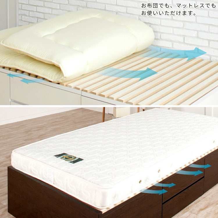 床板は すのこ形状 で「桐材」を使用していますので、通気性も良く清潔にお使いいただけます。 「BOX構造」ですから、ホコリが引き出し内に落ちません。
