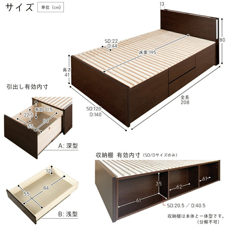 引き出しの奥行き(内寸)84cm で、たっぷり収納できるチェストベッドです。