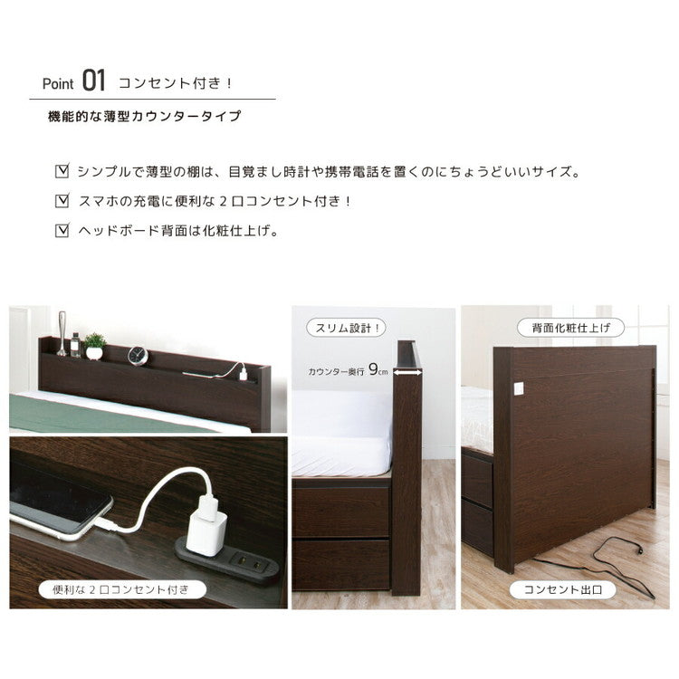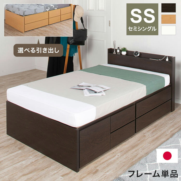 ベッド セミシングル 収納付き 日本製 宮付き コンセント フレームのみ 大容量 ベッドフレーム 木製 引き出し付き 収納ベッド 木製ベッド シンプル インテリア 北欧(代引不可)