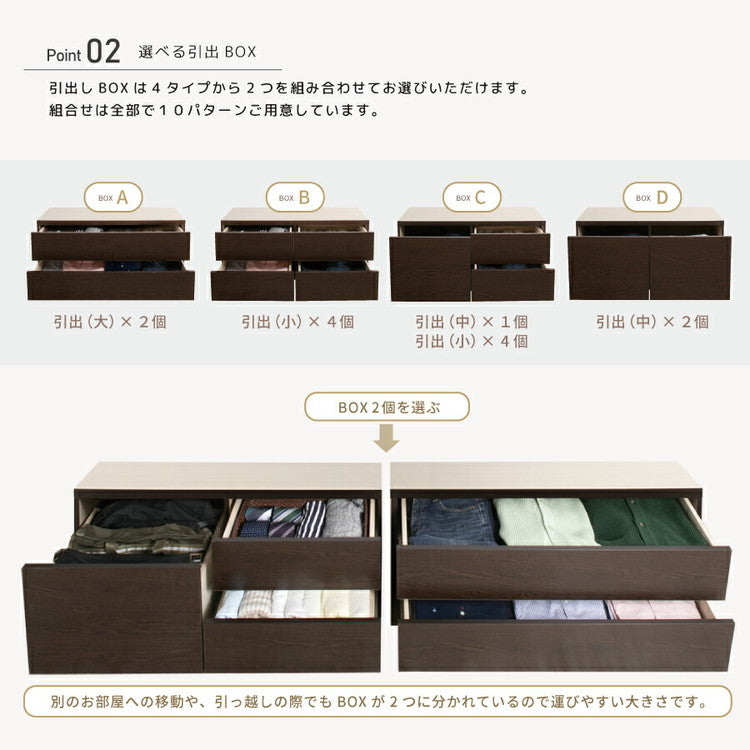 4種類の引出BOXからお好みの2種類をチョイス。組合せは10通り!