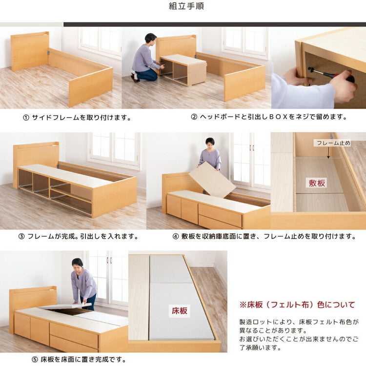 ベッド シングル 収納付き 日本製 フレームのみ 宮付き コンセント 大容量 ベッドフレーム 木製 引き出し付き 収納ベッド 木製ベッド シンプル インテリア 北欧 おしゃれ(代引不可)