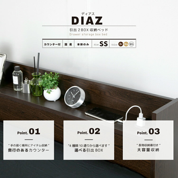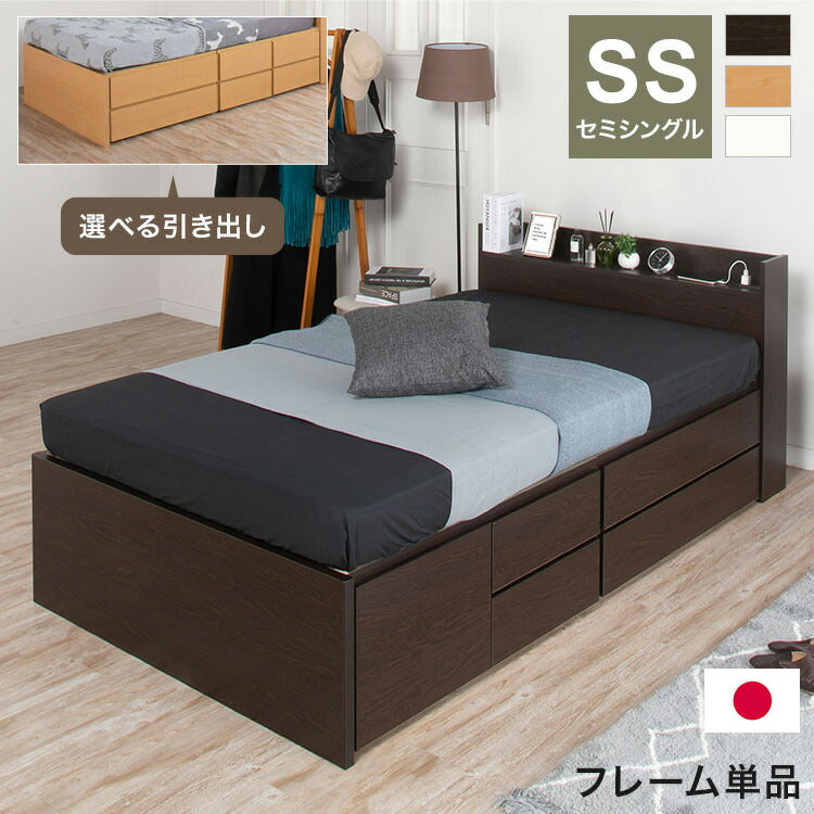 ベッド セミシングル 収納付き カウンター コンセント 日本製 フレームのみ 大容量 ベッドフレーム 木製 引き出し付き 収納ベッド 木製ベッド シンプル インテリア 北欧(代引不可)