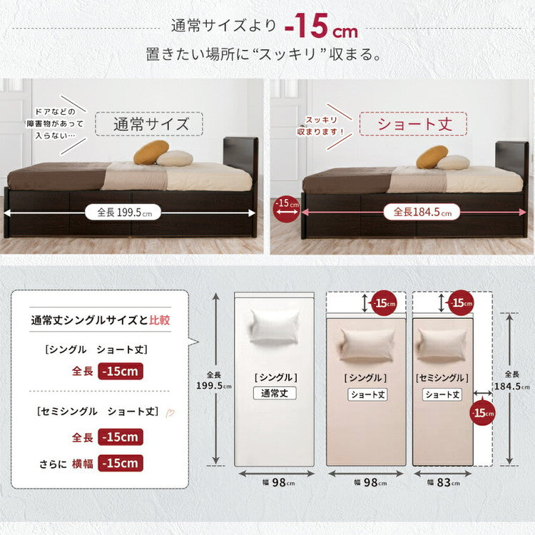ベッド セミシングルショート 収納付き 日本製 フレームのみ 大容量 ベッドフレーム 木製 引き出し付き 収納ベッド 木製ベッド シンプル インテリア 北欧 おしゃれ(代引不可)