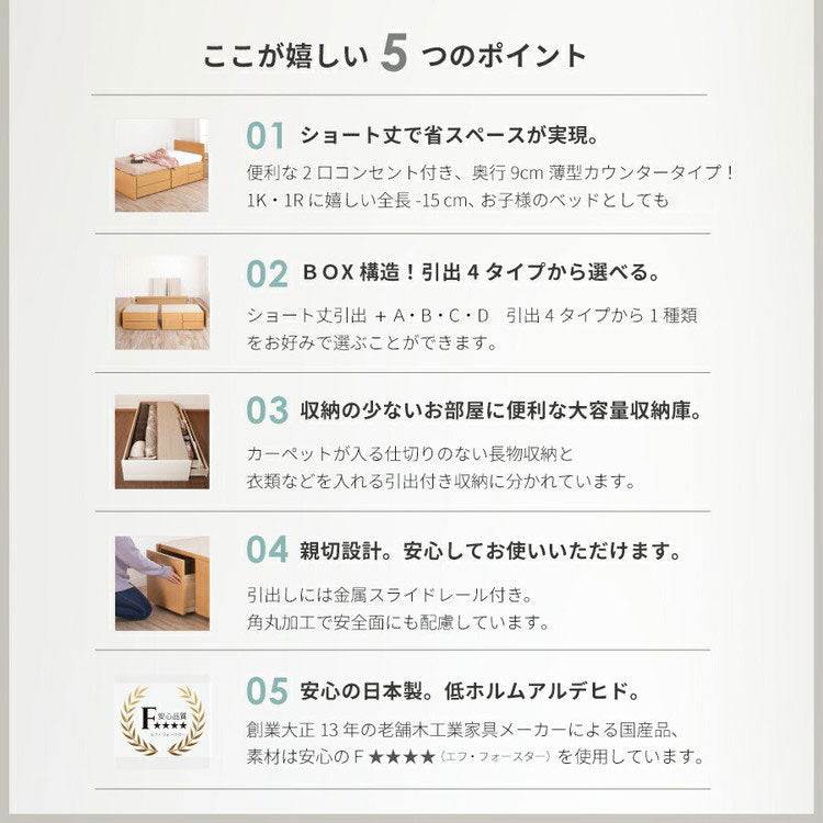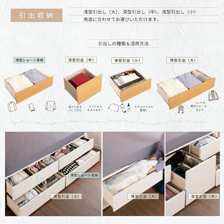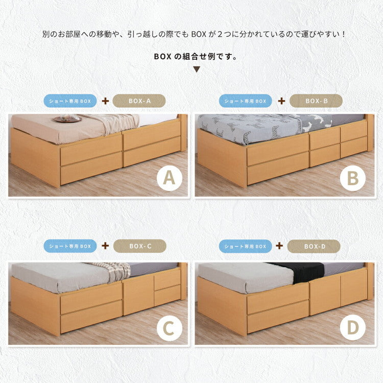 ショート専用引出し + 4種類の引出BOXからお好みの1種類をお選びください。