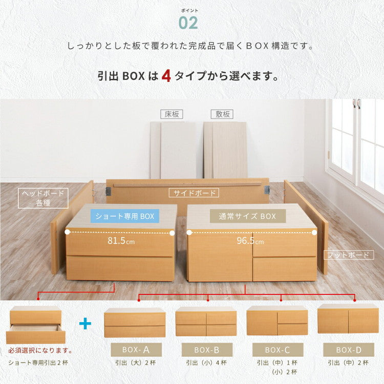 ショート専用引出し + 4種類の引出BOXからお好みの1種類をお選びください。