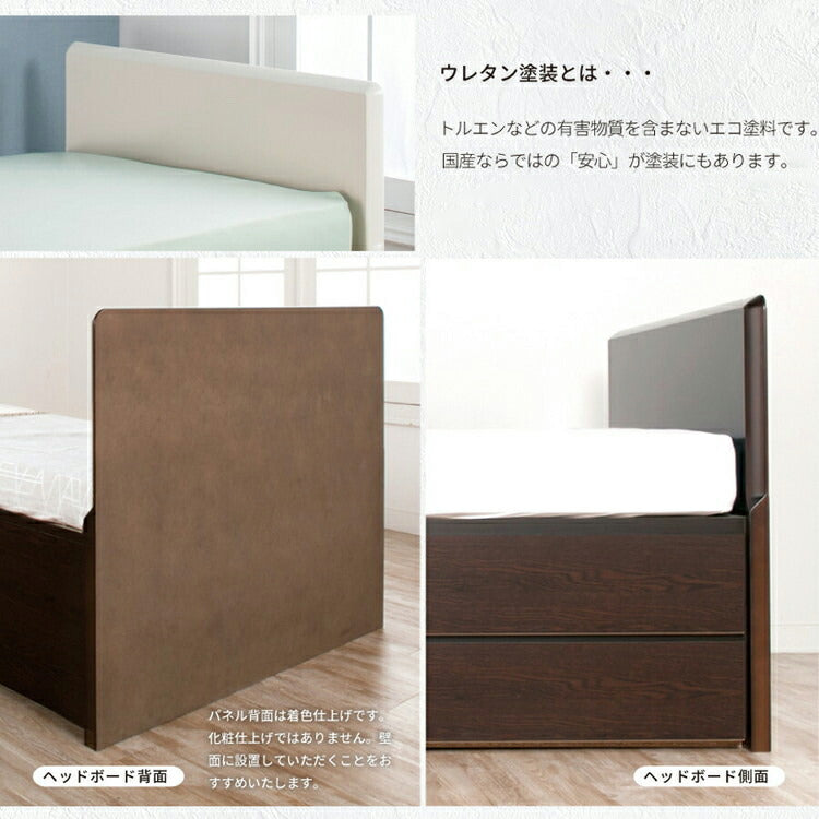 ヘッドボードの表面は美しい艶のウレタン塗装を使用しています。