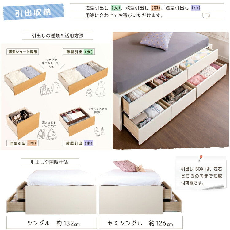 ベッド シングル 収納付き 日本製 フレームのみ 大容量 ベッドフレーム 木製 引き出し付き 収納ベッド 木製ベッド シンプル インテリア 北欧 おしゃれ かわいい 寝室(代引不可)