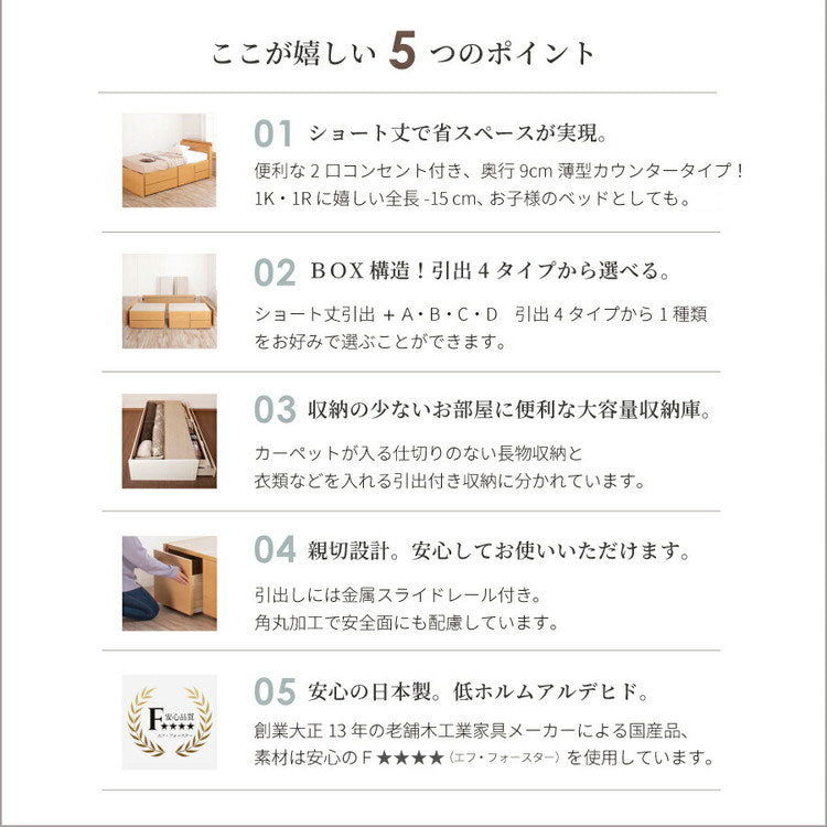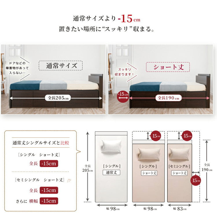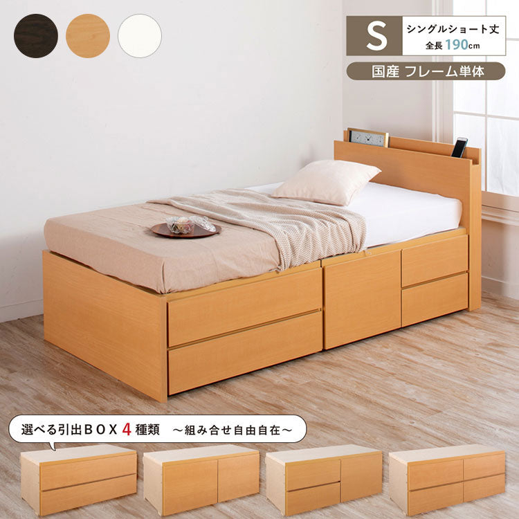 ベッド シングルショート 収納付き 日本製 フレームのみ 大容量 ベッドフレーム 木製 引き出し付き 収納ベッド 木製ベッド シンプル インテリア 北欧 おしゃれ かわいい(代引不可)