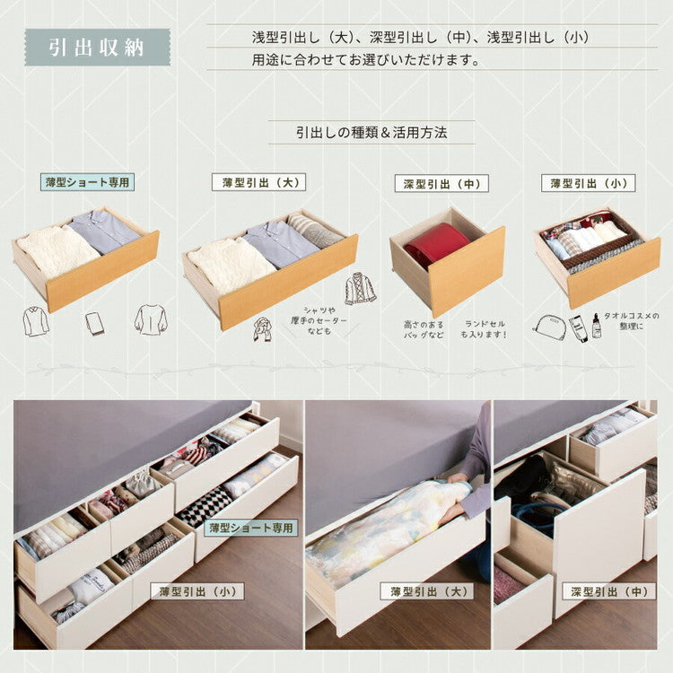 ショート専用引出し + 4種類の引出BOXからお好みの1種類をお選びください。