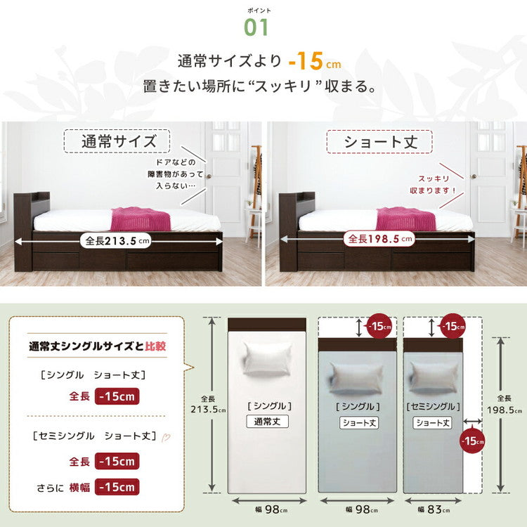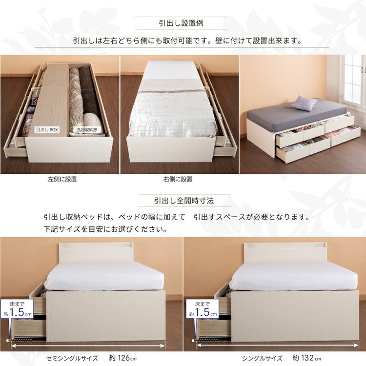 ベッド シングルショート 収納付き 日本製 フレームのみ 大容量 ベッドフレーム 木製 引き出し付き 収納ベッド 木製ベッド シンプル インテリア 北欧 おしゃれ かわいい(代引不可)