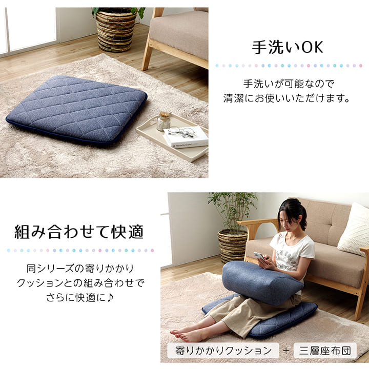 クッション 座布団 冷感 ひんやり ペット あぐら 三層 キルティング 洗える 約65×65cm(代引不可)