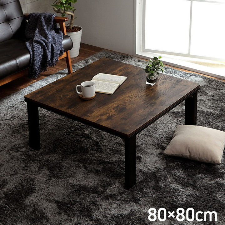 こたつ テーブル 正方形 80×80cm 木目 ヴィンテージ調 1年保証 こたつ台 ヒーター付き ローテーブル センターテーブル オールシーズン 一人用 在宅 テレワーク こたつ おしゃれ かっこいい(代引不可)