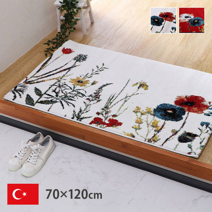 ウィルトン玄関マット 玄関 マット トルコ製 ウィルトン 織り 花柄 ボタニカル柄 上品 抗菌防臭 消臭 丈夫 へたりにくい ソファー前用 ベッドサイド用 約70×120cm アイボリー(代引不可)