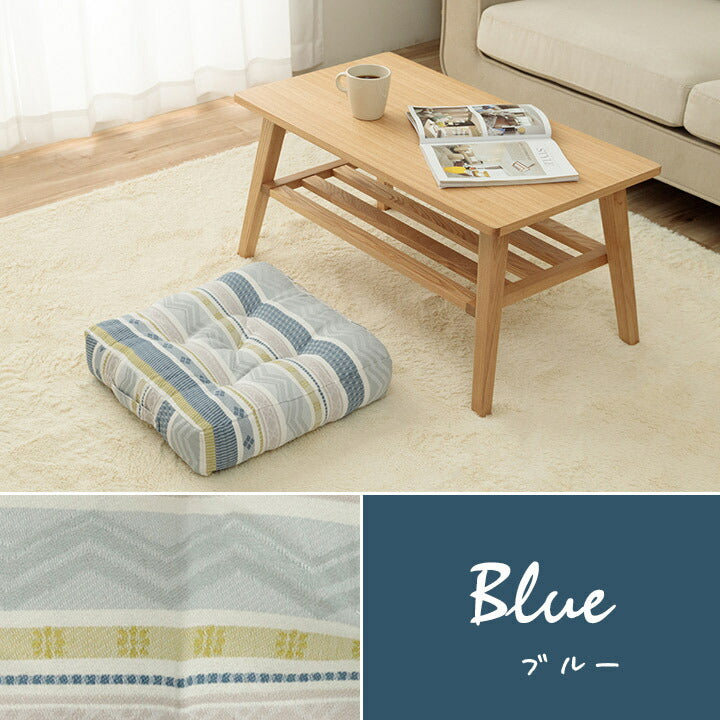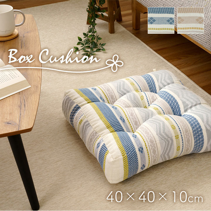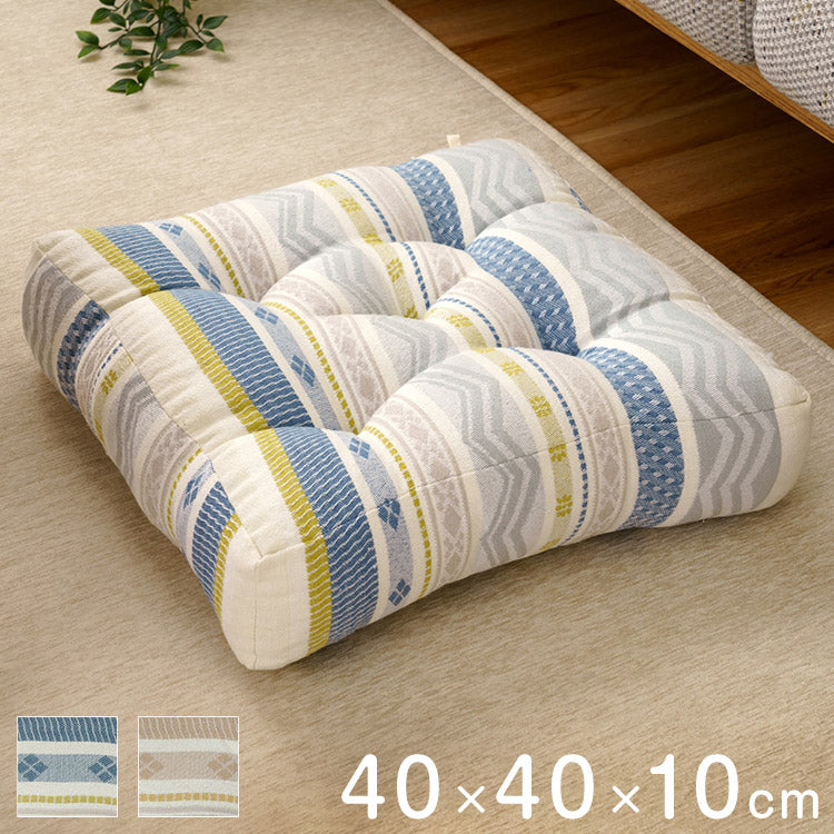 クッション シートボックス 約40×40cm 幾何学模様 洗える 10cm厚 40角 ブルー ベージュ おしゃれ ふかふか リビング 和室 座布団 かわいい(代引不可)
