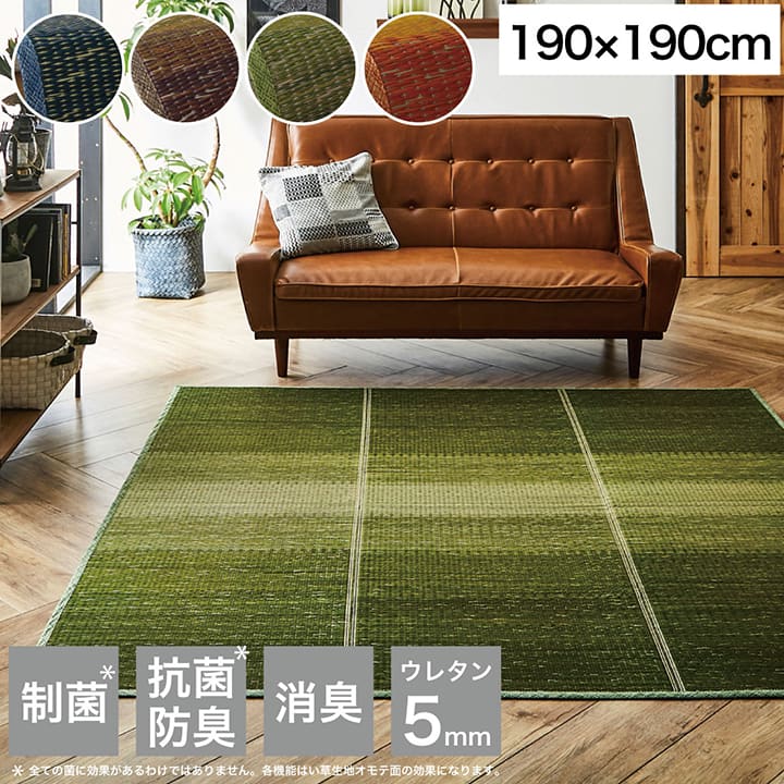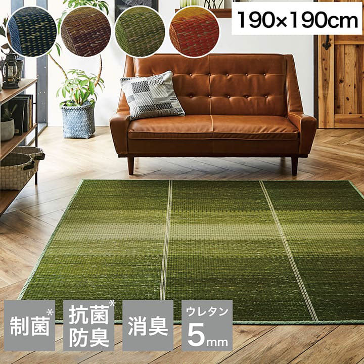 ラグ 190×190cm 小林製薬 持続性抗菌剤 KOBA-GUARD 制菌 抗菌防臭 滑り止め ウレタン 不織布 夏 い草 グラデーション(代引不可)