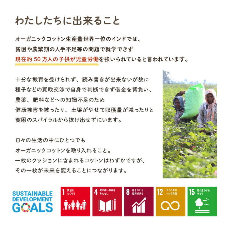インド綿100%のオーガニックコットンを使用し、ざっくりとした肌触りが特徴です。