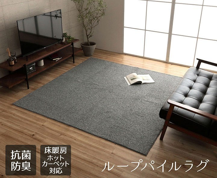 ラグ 正方形 手洗い ループパイル 高級感 おしゃれ 抗菌防臭 オーバーロック 滑りにくい加工 グレー 約2畳 約185×185cm 床暖房 ホットカーペット対応 クレイド(代引不可)