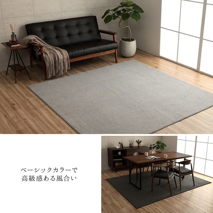 高級感のある風合いと、ベーシックカラーでどんなお部屋にも合わせやすいラグ。スタイリッシュなオーバーロック加工。抗菌防臭加工を施しているので、清潔にご使用いただけます。ホットカーペットや床暖房にも対応しているので、年中ご使用いただけます。裏面はフローリングを傷つけにくい不織布張り。滑り止め加工も施しているのでずれにくく快適です。軽量でコンパクトにたためるので、収納にも場所を取りません。