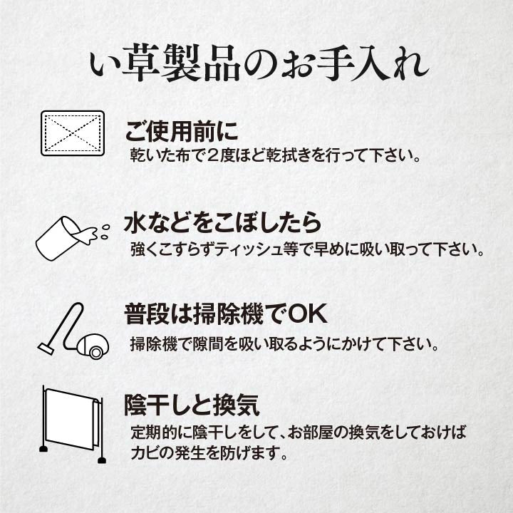 い草には空気の自然浄化作用、湿度の調節作用などがあり、汚れにくいという特長があります。