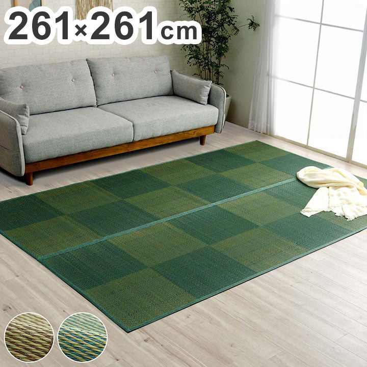 い草ラグ 261×261cm 江戸間4.5畳 花ござ カーペット 格子柄 ナチュラル シンプル 和室 洋室 裏不織布滑り止め 滑りにくい 抗菌防臭 消臭 お手入れ簡単 夏快適さらさら インテリア おしゃれ(代引不可)