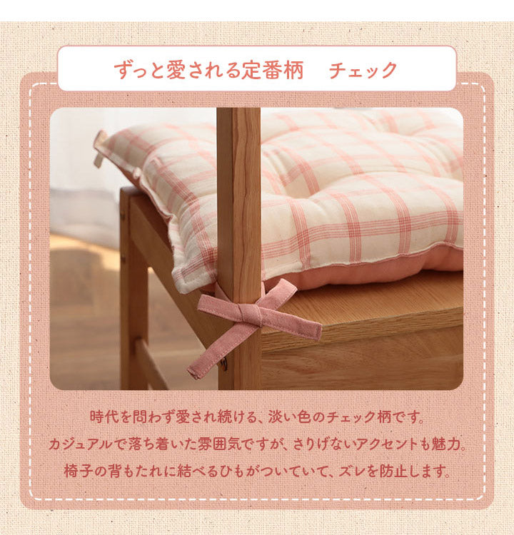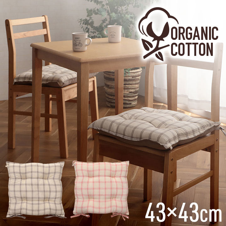 オーガニックコットン クッション シート 四角 椅子 日本製 綿100% チェック 洗える 約43×43cm おしゃれ かわいい 角型 格子 チェア いす エミリー(代引不可)