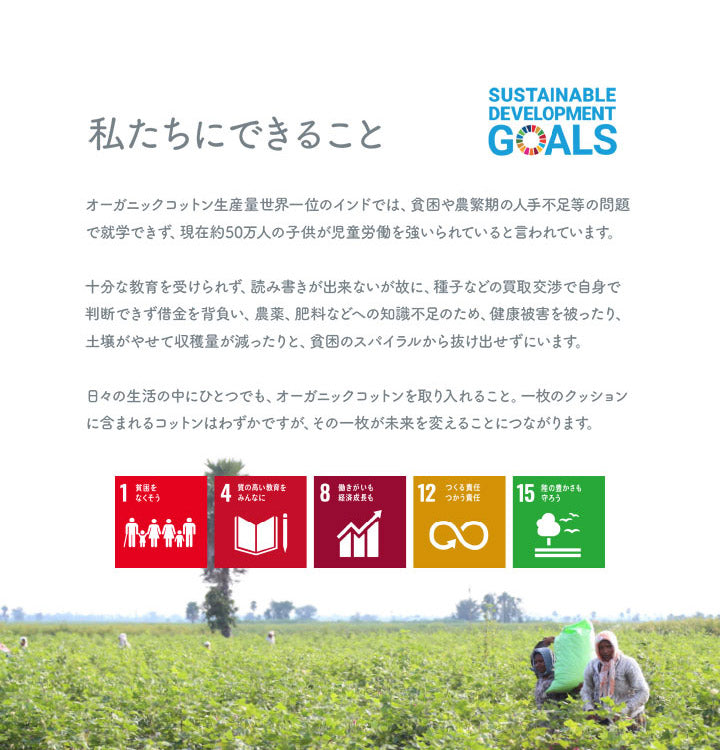 側地にインド綿100%のオーガニックコットンを使用し、ざっくりとした肌触りが特徴で、季節を問わず一年中心地よくお使いいただけます。