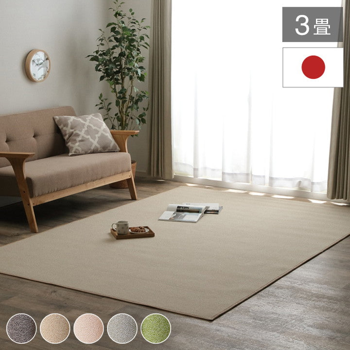カーペット ラグ 日本 抗菌 消臭 清潔 撥水 抗アレル物質 ダニ対策 無地 ベージュ 江戸間 3畳 約176×261cm フリッシュ(代引不可)