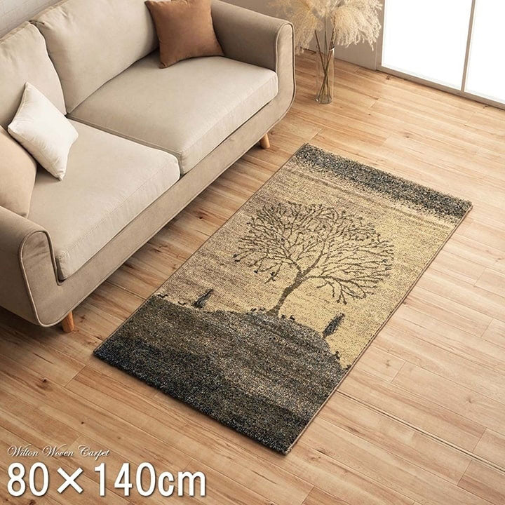 ウィルトン カーペット 長方形 風景画 抗菌防臭 約80×140cm ソウル(代引不可)