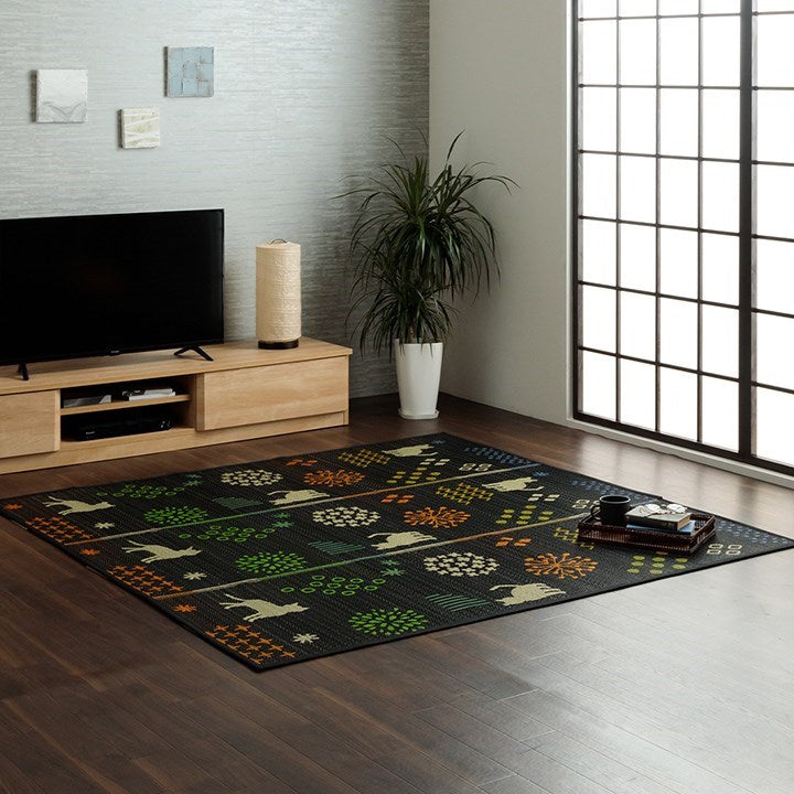 和モダンなデザインがどんなお部屋にも合わせやすいい草ラグです。