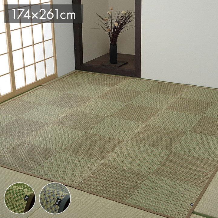 敷物 花ござ 国産 純国産 日本製 小林製薬 持続性抗菌剤 KOBA-GUARD 制菌 抗菌防臭 夏 い草 市松 モダン 滑り止め 不織布 グリーン 江戸間3畳 約174×261cm ラウム(代引不可)