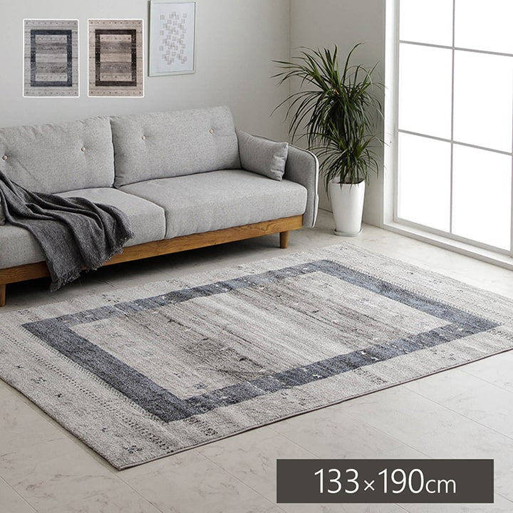 トルコ製 ウィルトン織り カーペット ラグ 絨毯 長方形 ギャッベ柄 グレー 約133×190cm かわいい おしゃれ(代引不可)