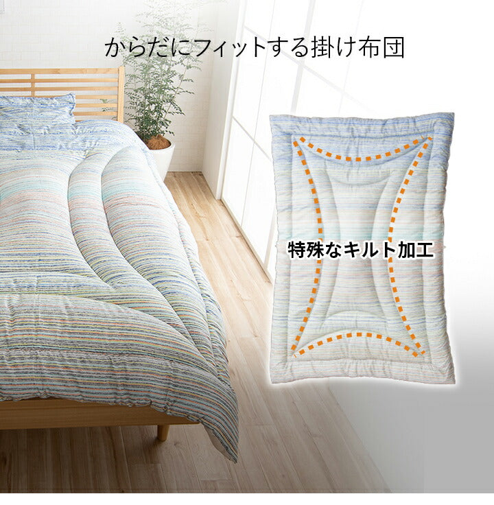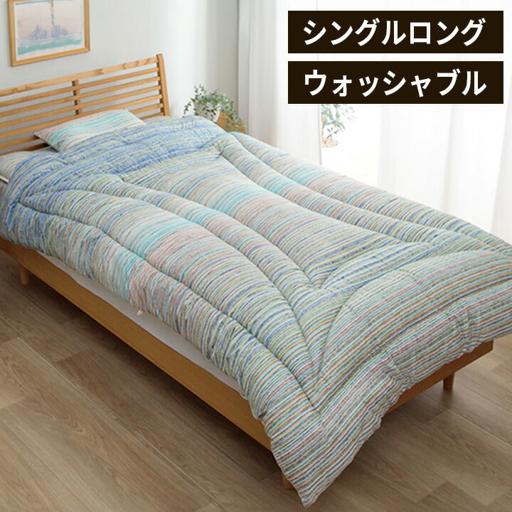 洗えるAZ シングル セット BL寝具 洗える 清潔 掛け布団 東レft綿 カバー付き 日本製 シングルロング 約150×210cm マルチブルー(代引不可)