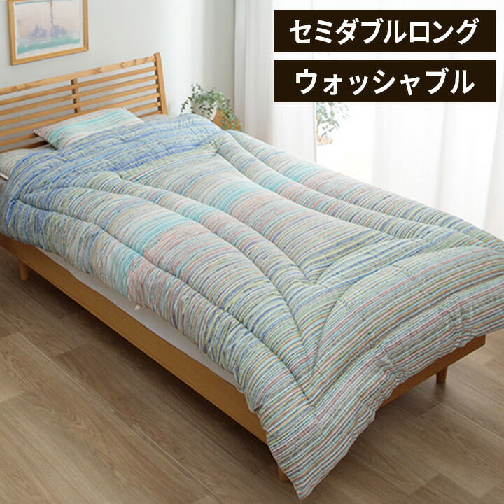 洗えるAZ セミダブル セット BL寝具 洗える 清潔 掛け布団 東レft綿 カバー付き 日本製 セミダブルロング 約170×210cm マルチブルー(代引不可)